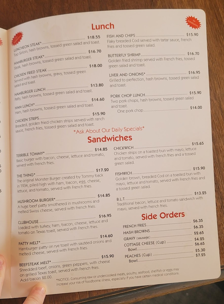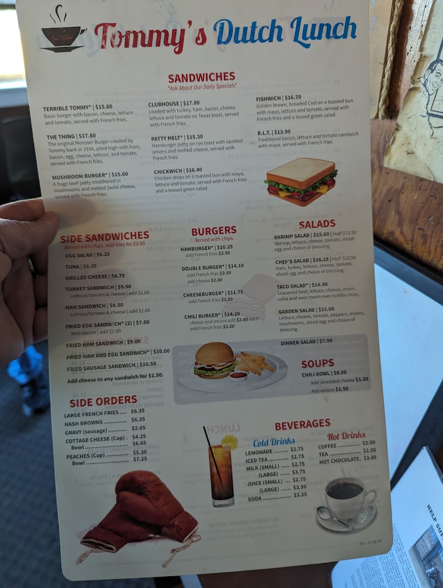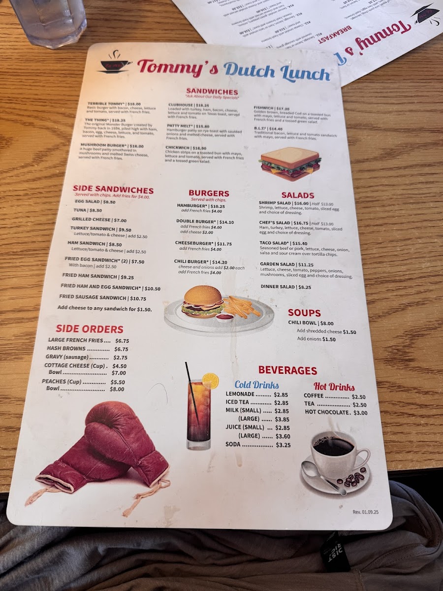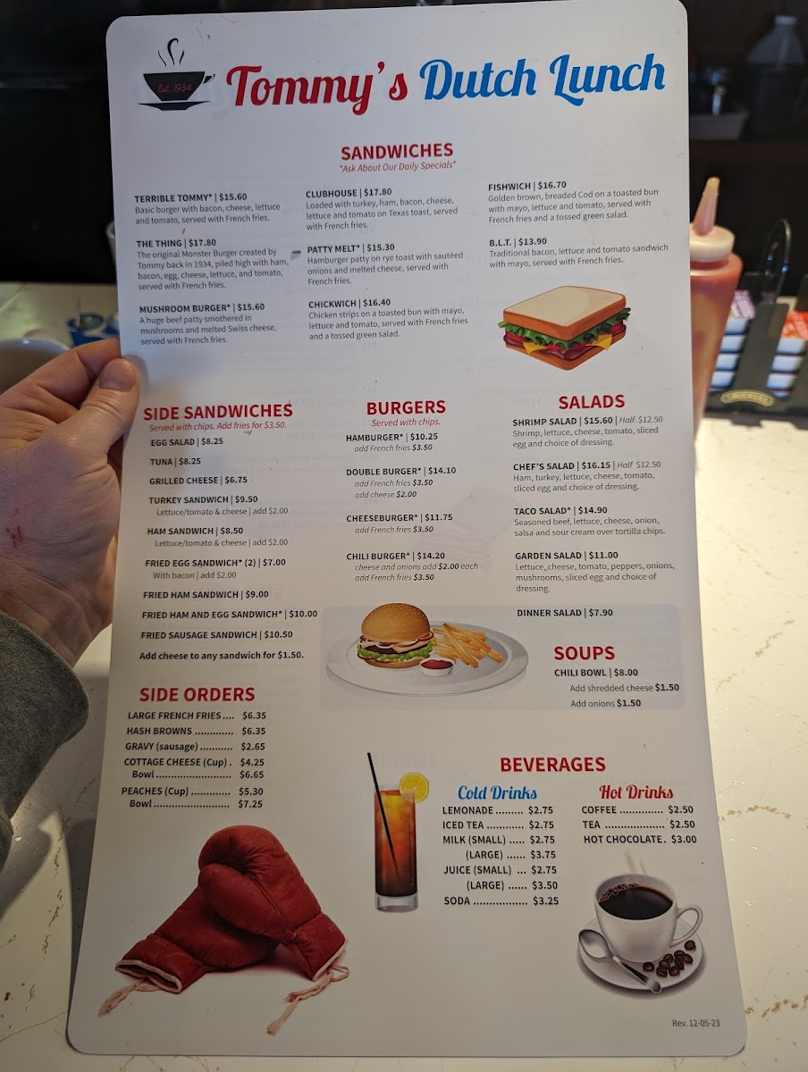 Tommy's Dutch Lunch offers a straightforward, comforting menu that reflects its classic American diner roots. You’ll find a selection of hearty breakfast and lunch dishes designed for any time of day, whether it’s an early morning start or a casual midday meal. The menu features well-loved staples like chicken fried steak and the Kitchen Sink Omelet, alongside simple yet satisfying options such as biscuits and gravy or a mushroom burger.